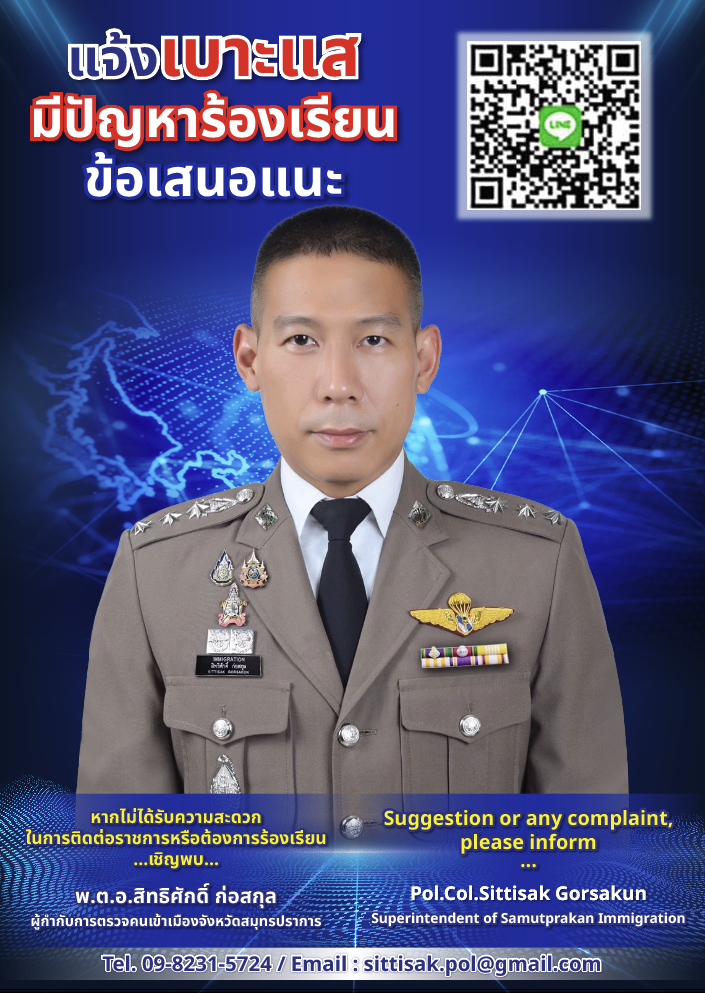 If you are inconvenienced in any way, please contact the superintendent of Samut Prakan Immigration