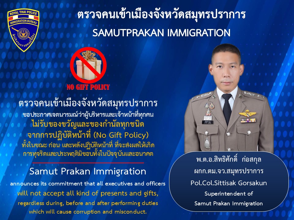 If you are inconvenienced in any way, please contact the superintendent of Samut Prakan Immigration